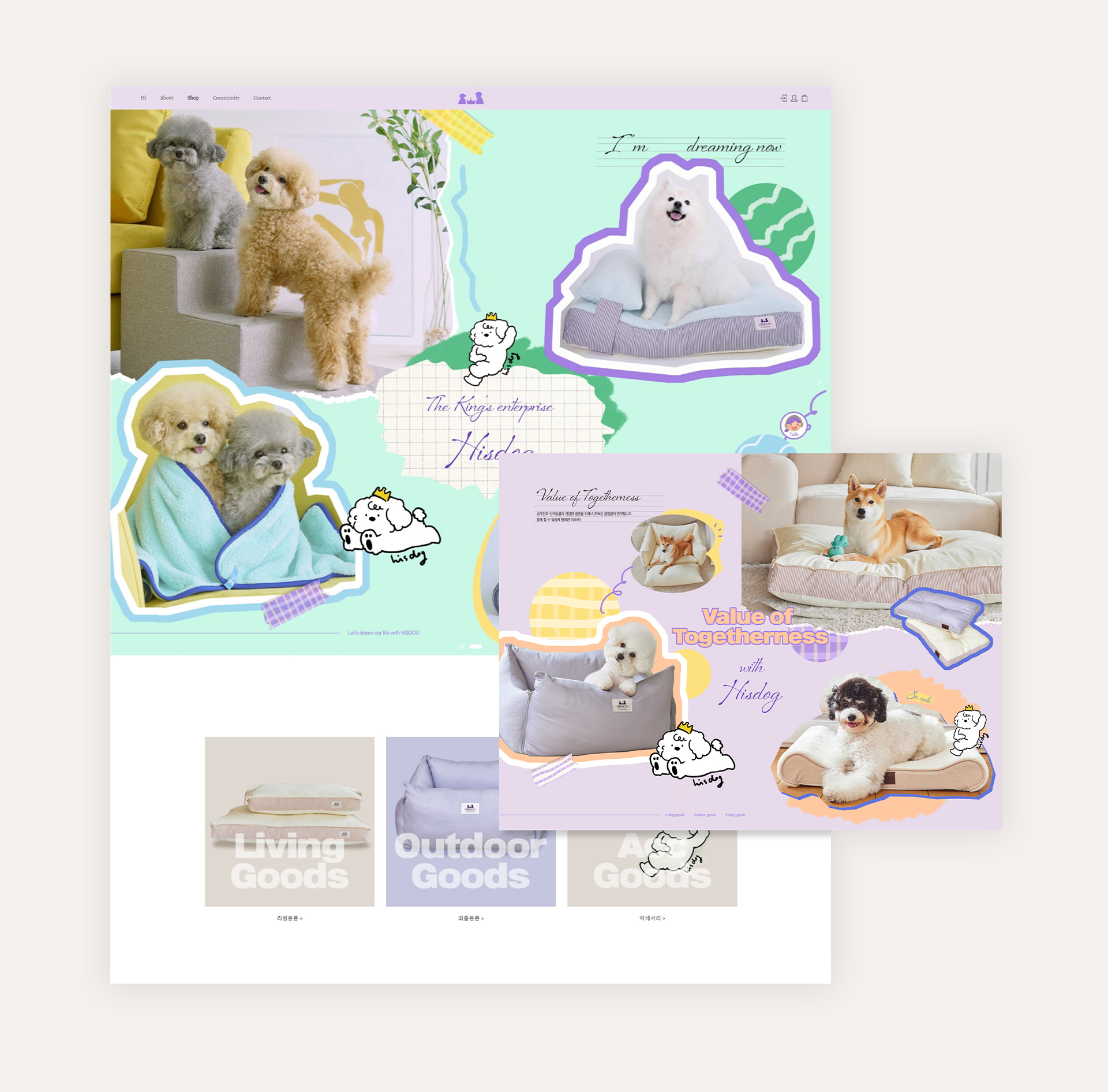 브랜드 특유의 아트적이고 통통 튀는 감성을 웹상에 구현하기 위해, 과감한 컬러 배너와 위트 있는 일러스트를 적극 활용하여 구축한 반응형 쇼핑몰입니다. 시각적인 재미 요소가 정보 전달을 방해하지 않으면서도, 방문자에게 강력한 브랜드 인상을 남기도록 디자인했습니다.